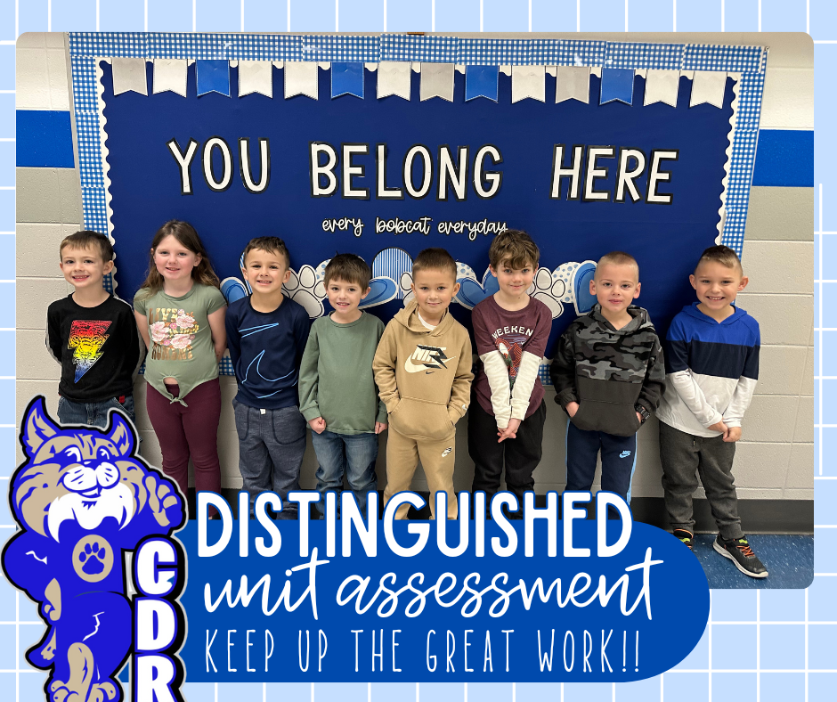 WAY TO GO Kindergarten!! Check out these {Distinguished} bobcats on their District Unit Reading Assessment! Keep up the great work bobcats! So proud of you!